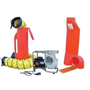 Description: 8' Centrifugal Blower Kit, 2-spd, 3/4 HP electric, 115 VAC, accessories 8' SVB-E8-2 Centrifugal Blower, Industrial Saddle Vent, 90 degree elbow, 15 foot & 6 foot duct, duct canister & universal mount
