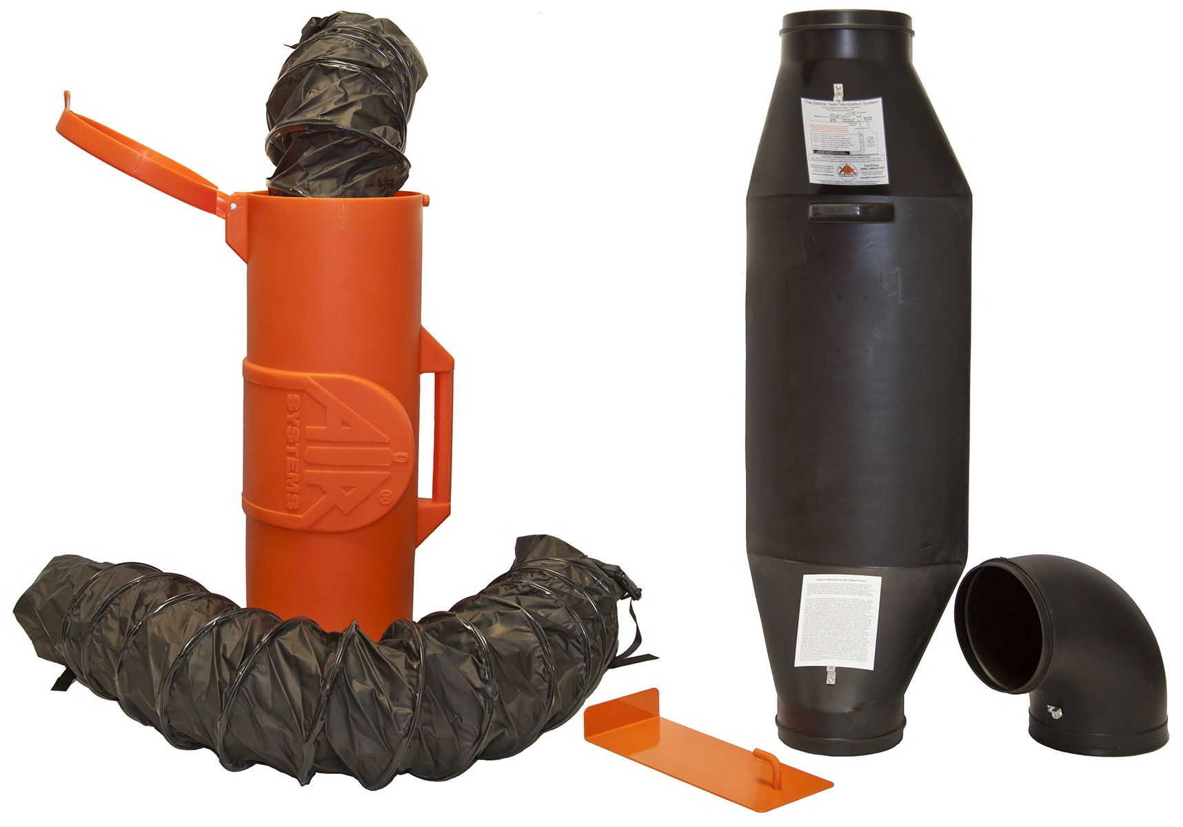 Description: 8' Conductive Saddle Vent Ventilation Kit 8' Conductive Saddle Vent and elbow, 6 and 15 foot conductive duct, duct canister, and universal mount