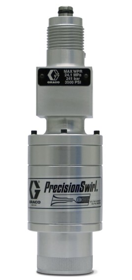 PrecisionSwirl features adjustable rotational speed, stand-off distance and flow rate for greater control and for better penetration on irregular shaped parts. It is compatible with most sealants including expandable sealers, heat cure epoxy and PVC plastisol.